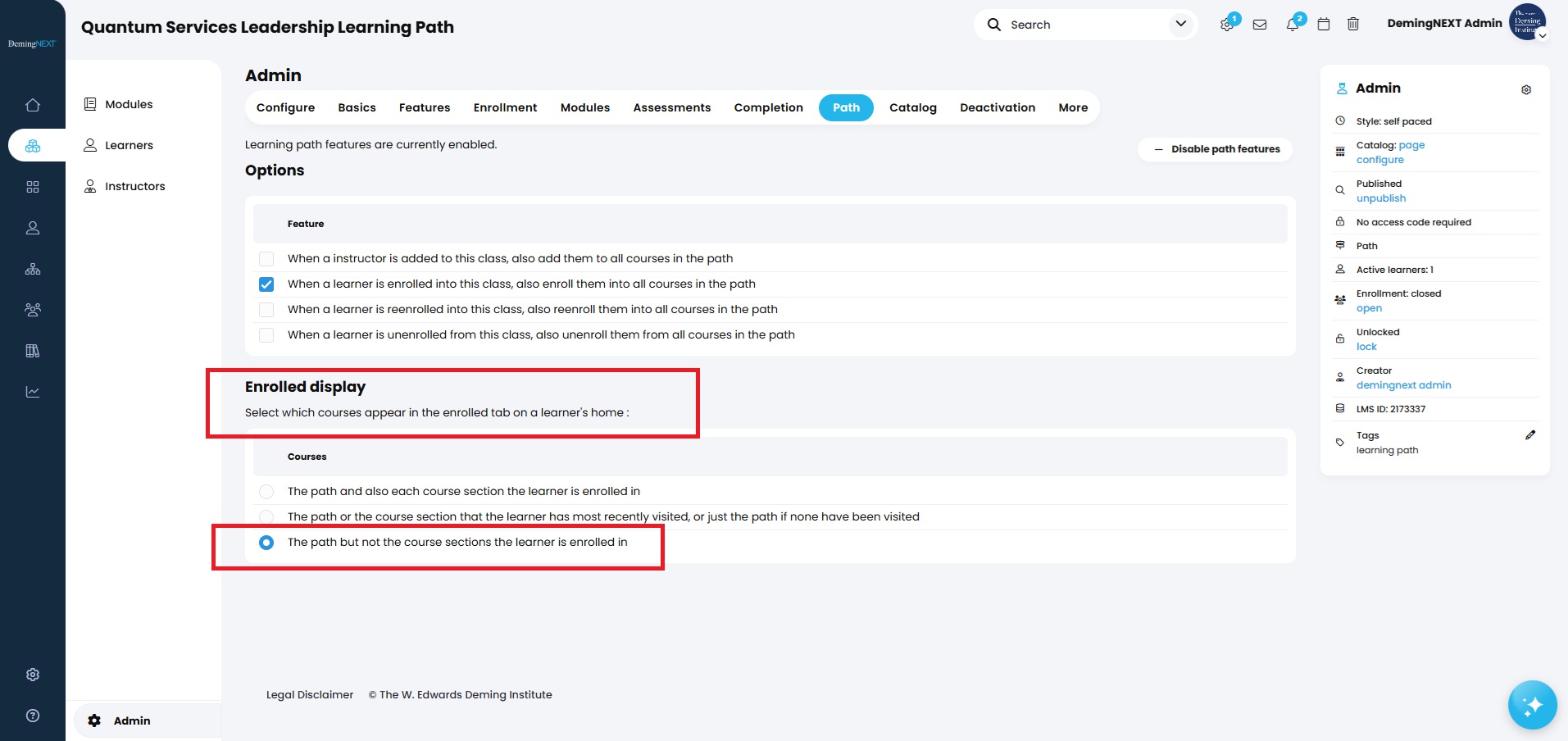 Path options for "Enrolled display" should also apply to left navigation "Enrolled" tab