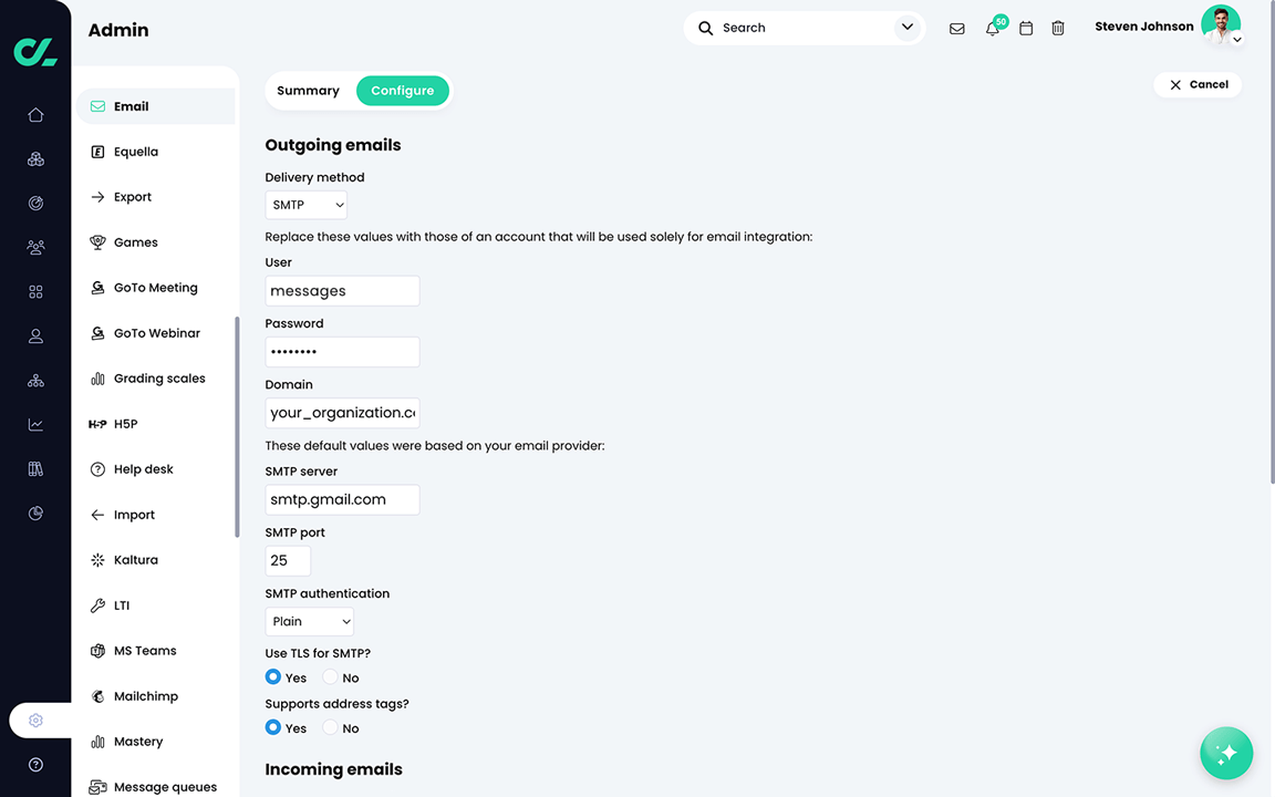- Use TLS for SMTP?: Enable if your SMTP server requires TLS.