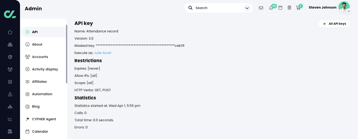 To view a list of available API Keys, administrators: