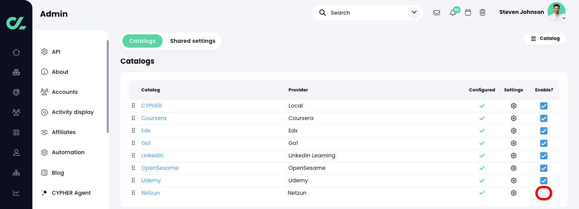 - Select the Enable? checkbox for your Netzun catalog integration.